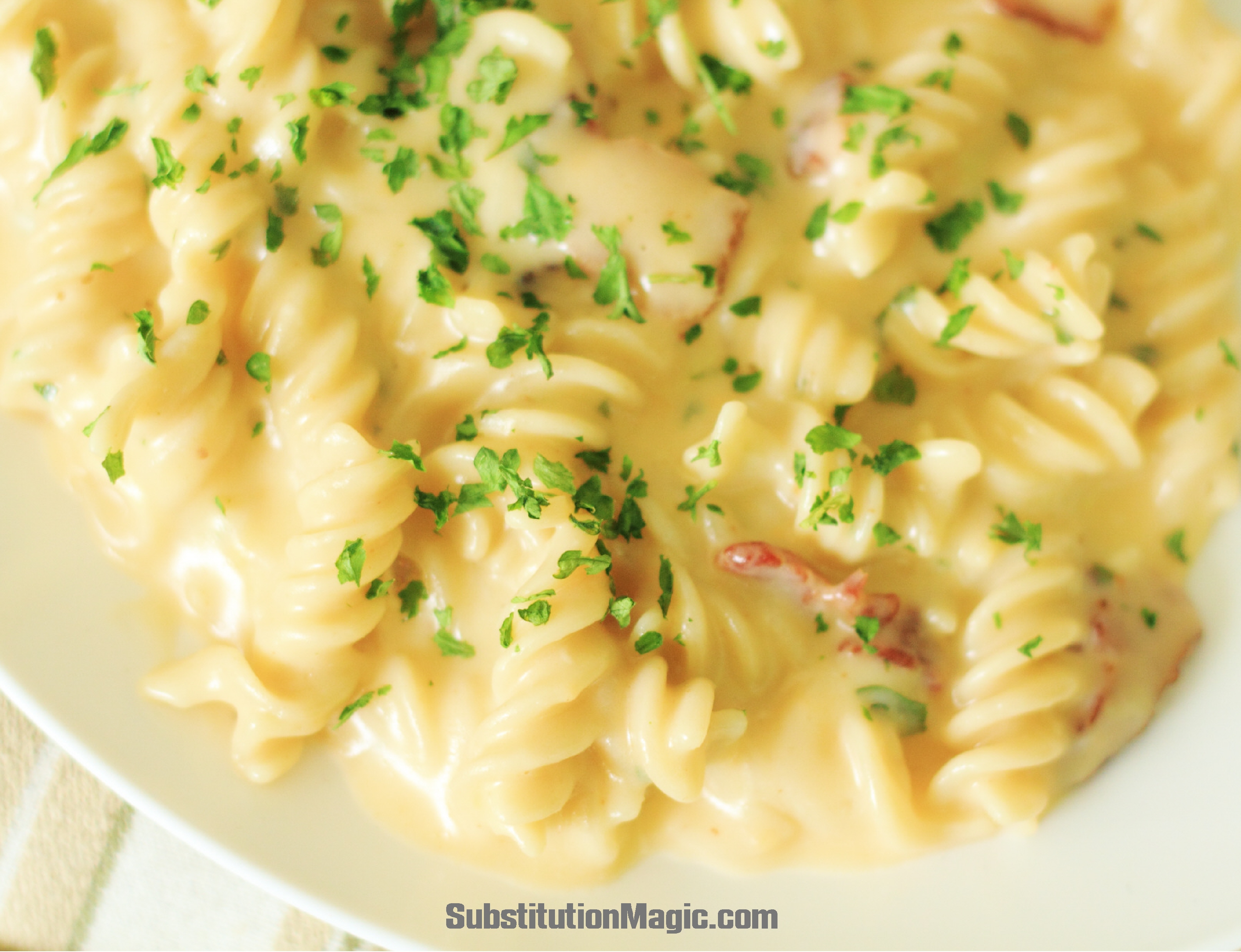 Childhood memories waft through my mind as I reminisce about the warmth, creaminess and comfort of “good old” mac & cheese.  You don’t have to be a kid to appreciate the cozy feelings a spoonful of mac & cheese can bestow upon your mouth.  With an allergy friendly diet,  you can say “YES” to that smooth, golden cheesy flavor.  When my youngest daughter was graduating from high school, I asked her what she wanted served at her graduation open house.  She didn’t hesitate with the answer:  “Your macaroni & cheese, Mom!”  Needless to say, I made enough batches of this recipe for 100 people that day.  This recipe can be made quick and easy in less than 30 minutes on the stovetop or even easier in your slow cooker.  Directions for both will follow.